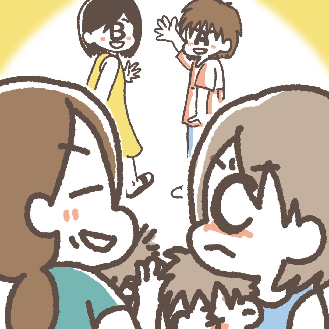 A部さんとB場さんが私たちの赤ちゃんと遊んでくださっている間