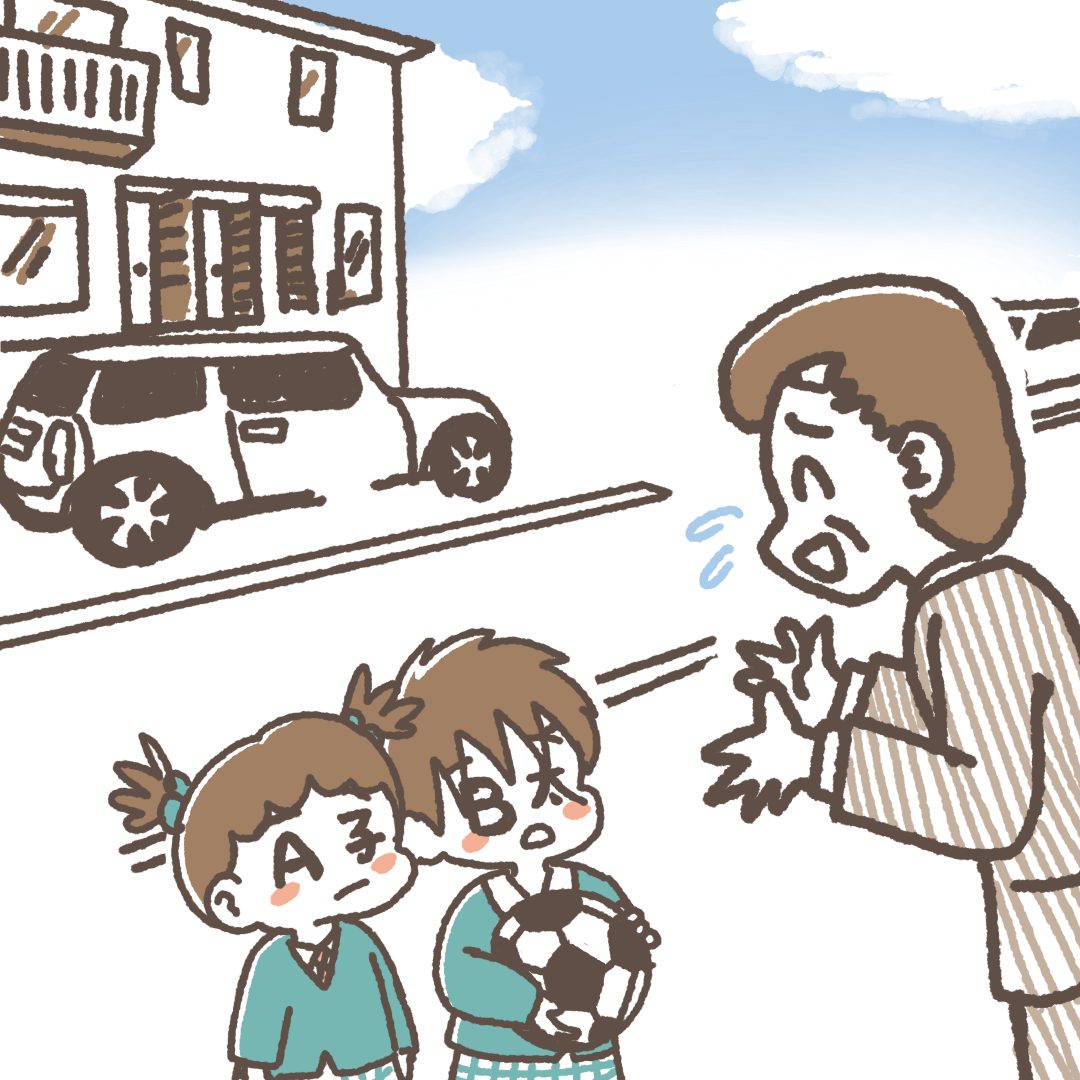 アパートの駐車場でボール遊びしているを見つけた私。