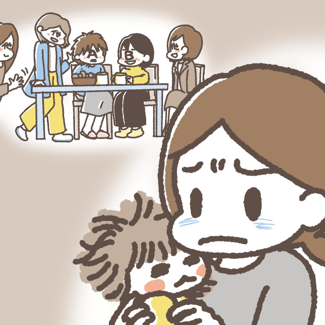 子どもをあやすふりをしながら様子をうかがい
