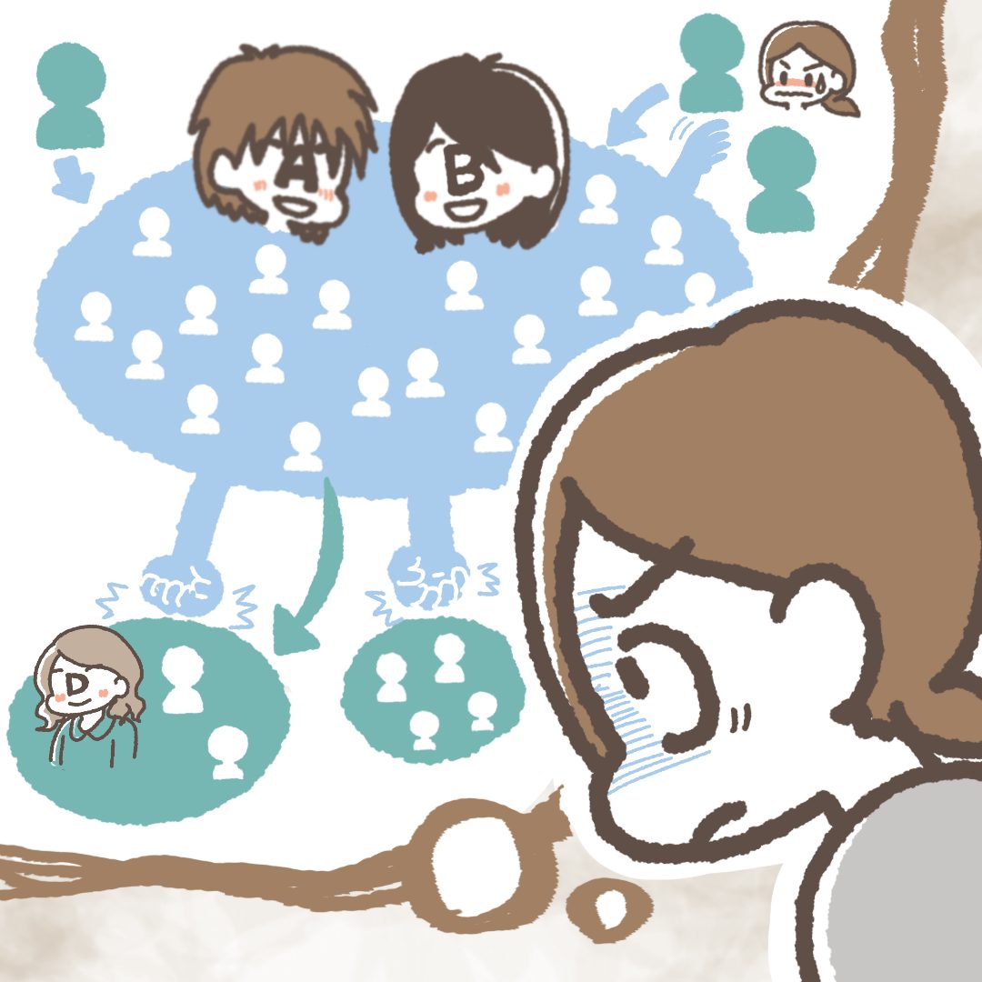 私のご近所物語【21】AB班の偏見D井さんの悪口の件で、ご近所さんとママ友たちは幼稚園で巨大なグループを作ってママ友派閥を作っているようでした。巻き込まれてはいけないと思った私は…