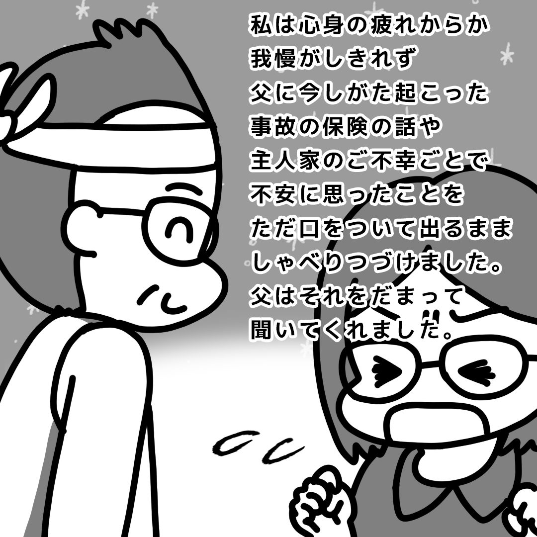 祖父のご葬儀で不安に思ったことを父に相談した私。父も不思議に思っていたことが発覚して安堵した私に、父は話しかけてくれるのでした。