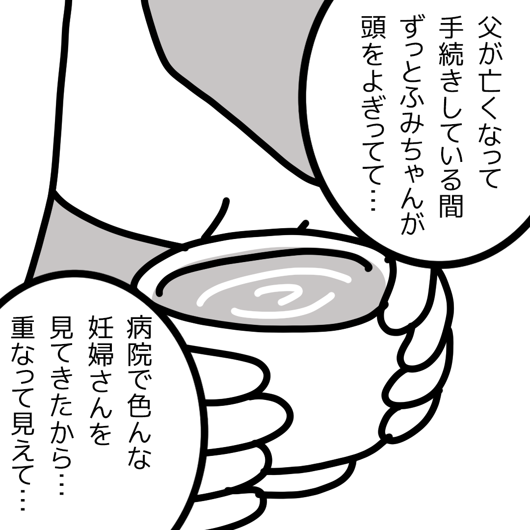 【妊娠中に起こったこと】その35時間をかけてきたおばさんの家。私は主人と家の中にお邪魔します。おばさんが今までの一連の騒動を説明するのですが、そのさなか私は心の変化がでてきます。