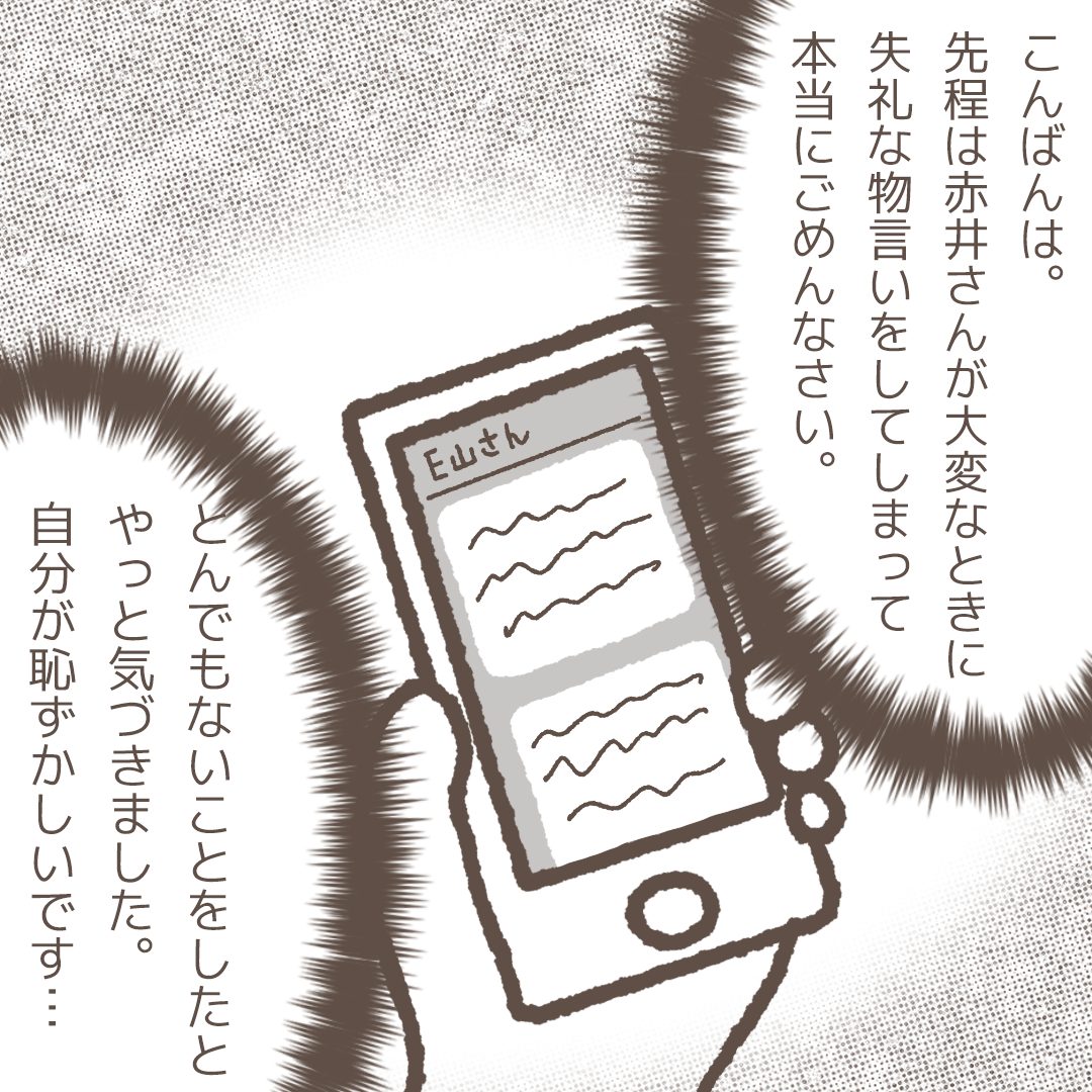 私が汚された玄関を掃除しているときに出会ったご近所のE山さん。いつもにこにこ愛想の良い彼女に、私はつい本音をぶちまけてしまいます。すると彼女も思うことを吐露してくれたのですが、突然いい方が豹変して…