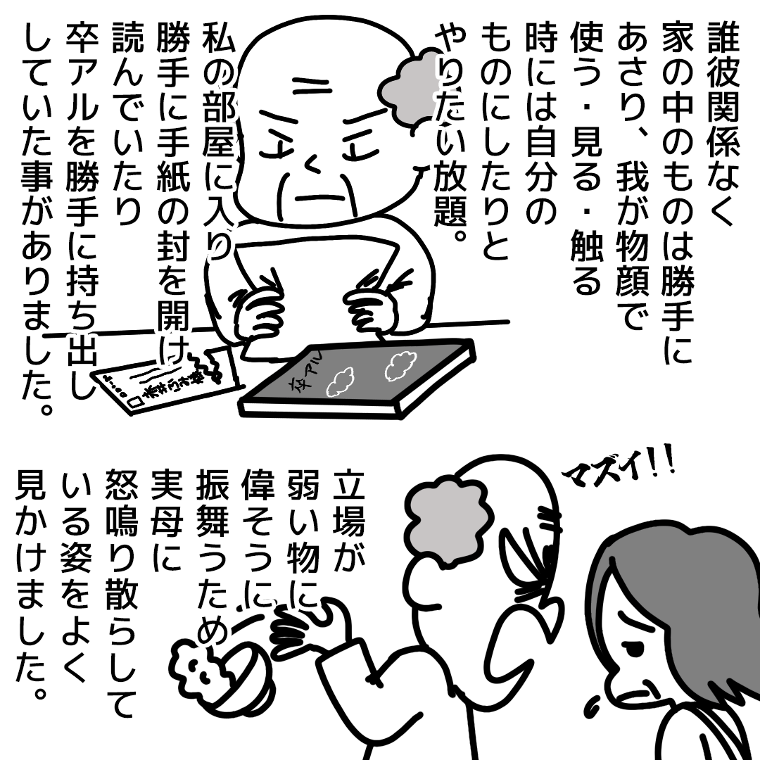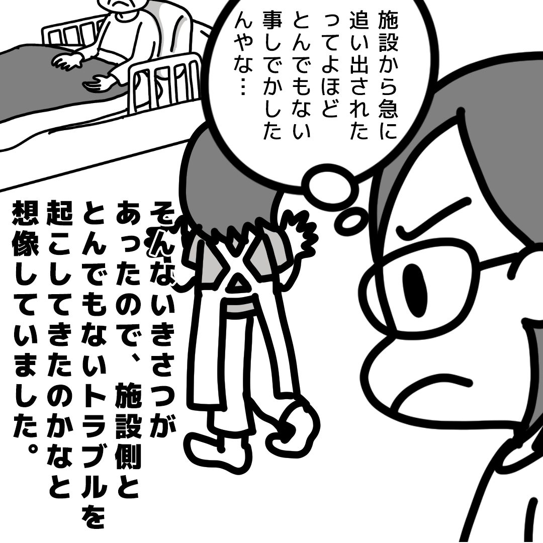 落ち着かない祖父をなだめるから、部屋をでてとうながす母にしたがい、私はいったん祖父の部屋から出ます。なぜ祖父がこのタイミングで高齢者向け住宅を追い出されたのか、説明をはじめます。